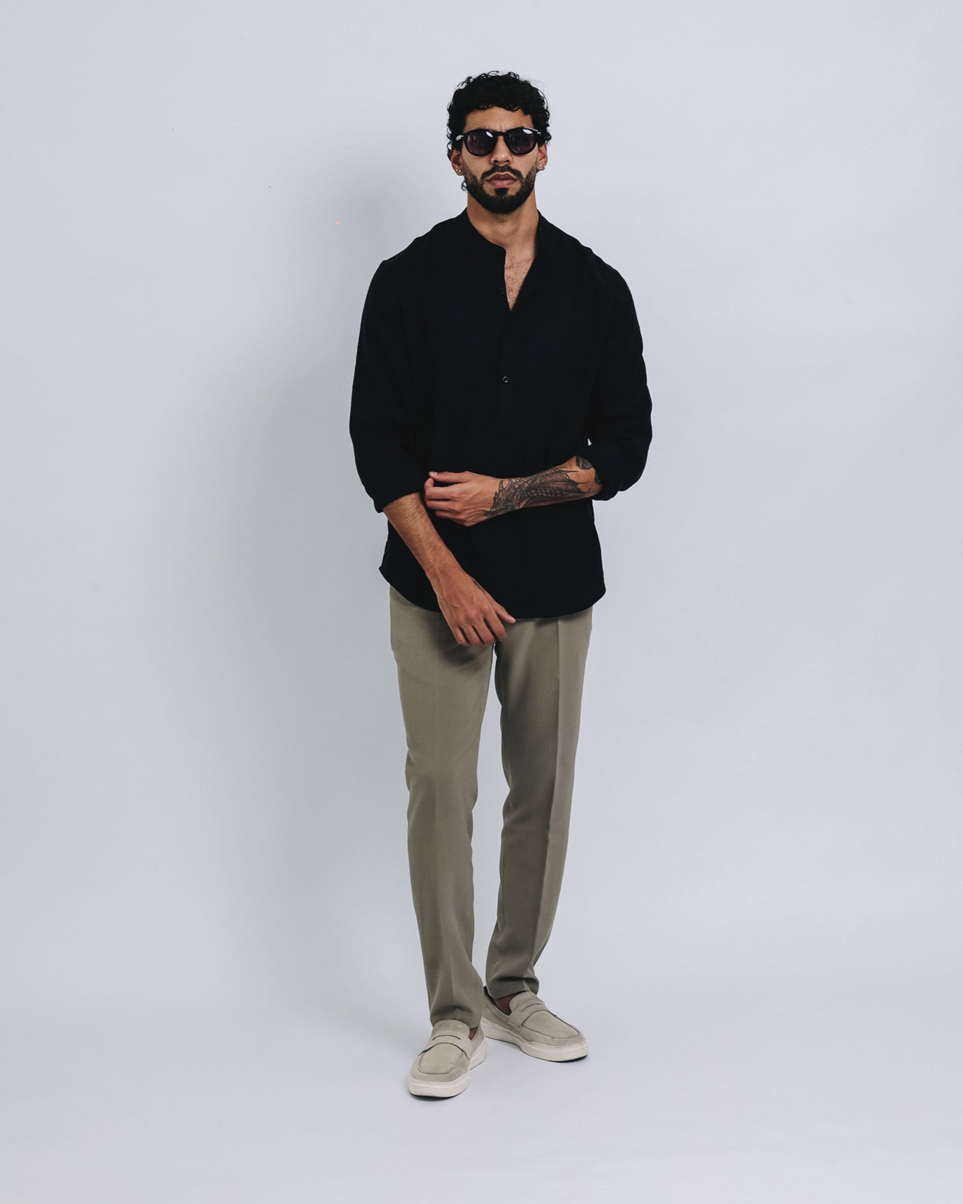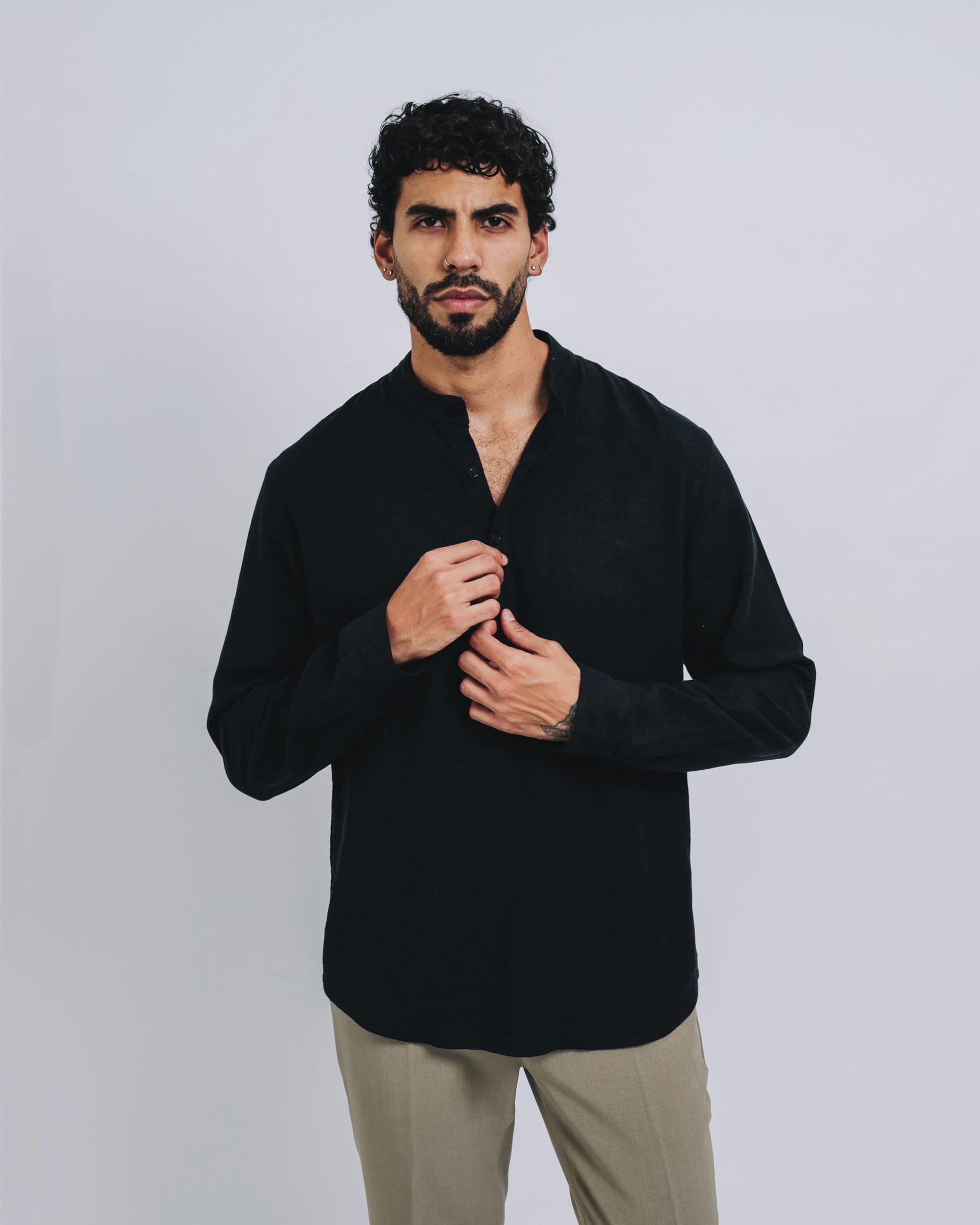 Camisa mao de lino - negro