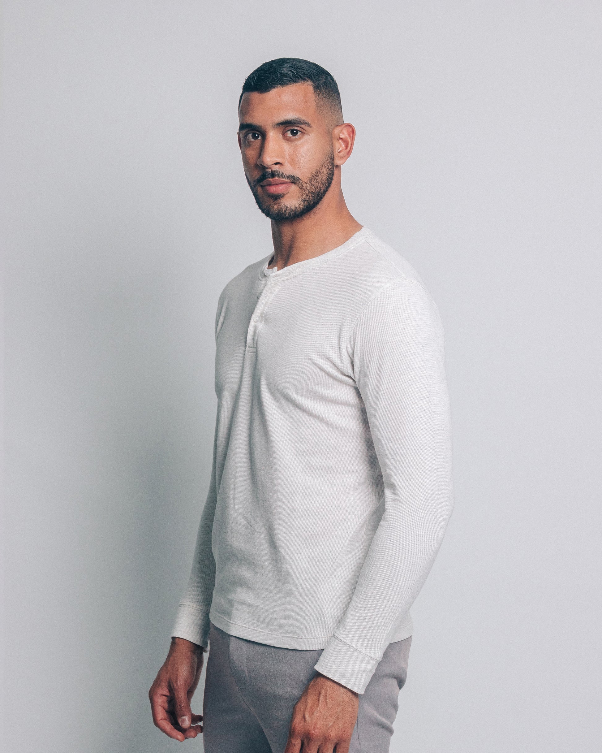 Polo manga larga con cuello henley confeccionado en tejido de algodón de punto fino. Media cerradura frontal con botones a juego. Corte slim. Detalle de abertura lateral. Pespunte en hombros, siza y puños para mayor duración.