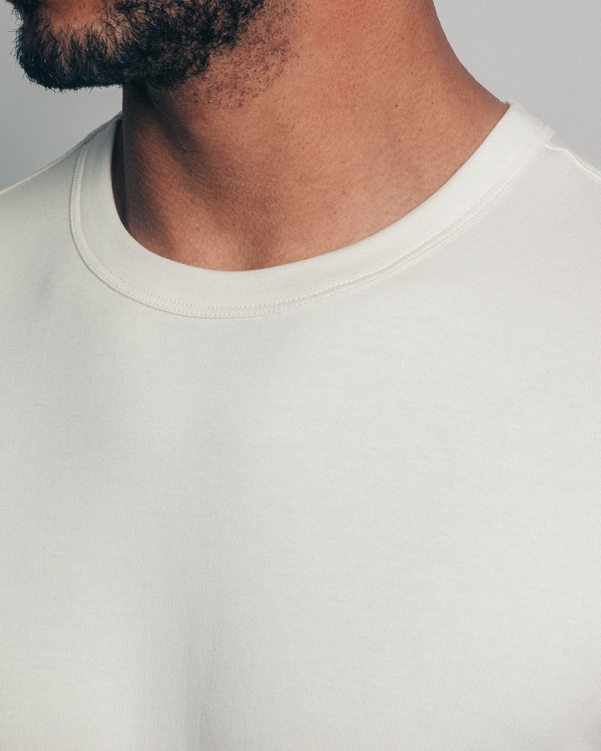 Camiseta manga corta confeccionada en algodón pima de exportación. Detalle de pespunte en hombros, siza, y listón de manga para mayor duración. El cuello es una pieza de 5 cm. de ancho con acabado de triple capa de tela. Corte regular, de silueta ligeramente más angosta de la cintura.